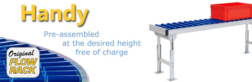 Flexible stands stationary or mobile: A roller conveyor is not complete without durable, stable stands. Our robust H-stands combine a low price with the highest quality. Mobile or stationary. Always extremely stable and adjustable to your needs. Deliverable from stock and pre-assembled free of charge at the requested height.